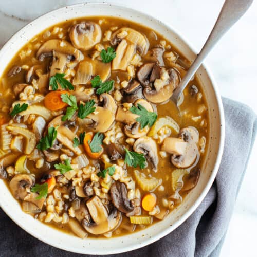 This savory but straightforward mushroom barley soup is brought to life by including hearty mushrooms, finely chopped veggies, and delicate pearl barley. Just as soothing as the barley soup served at your go-to deli, but packed with even more flavor and finished with a hint of smokiness! Your collection of simple soup recipes will need to be expanded to include this one.